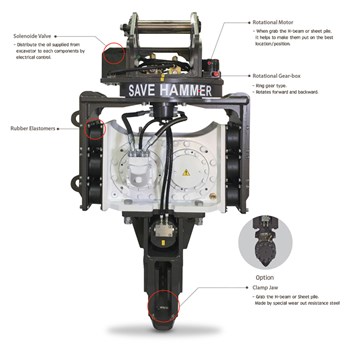 Vibro Vibratory Hammer (Pile Driver) adalah mesin serbaguna yang dapat digunakan untuk ekskavator yang dapat mencengkram besi H-Beam dan sheet pile di sungai, tembok jalan, maupun pengerjaan konstruksi gedung.